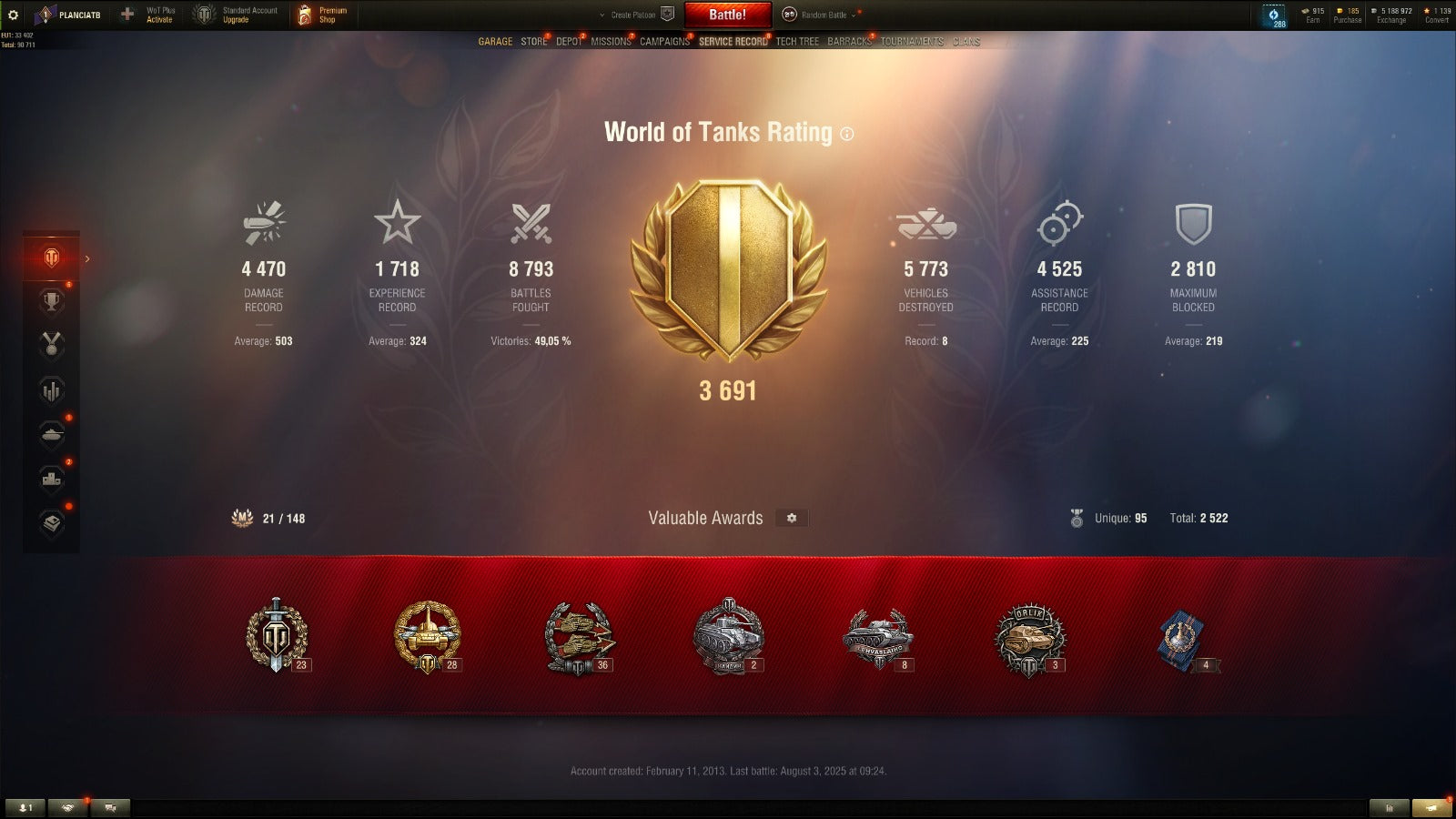Battles: 8793 Winrate: 49,1%