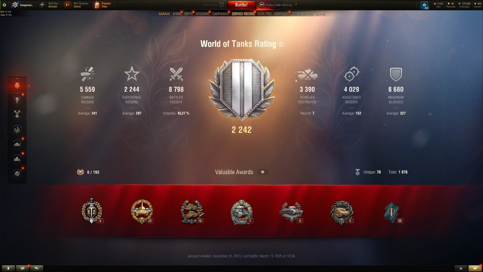 WOT ACCOUNT EU 3 X Tier tanks 9 Days premium 773K credit + WOT 2.0 REWARDS!!!