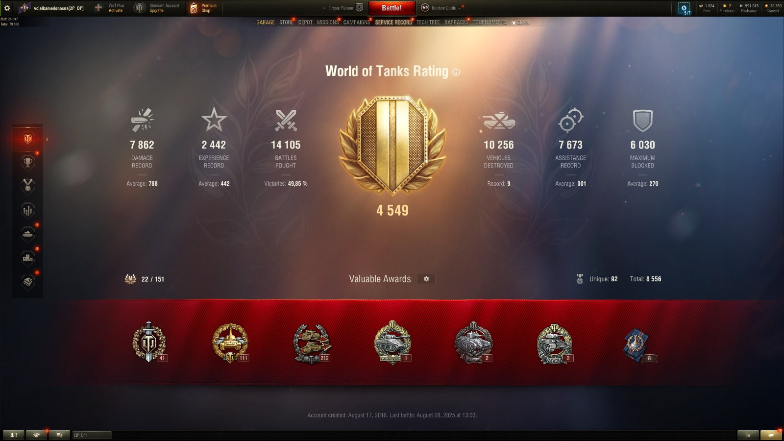 Battles: 14K Winrate: 49,9% Rank Gold II